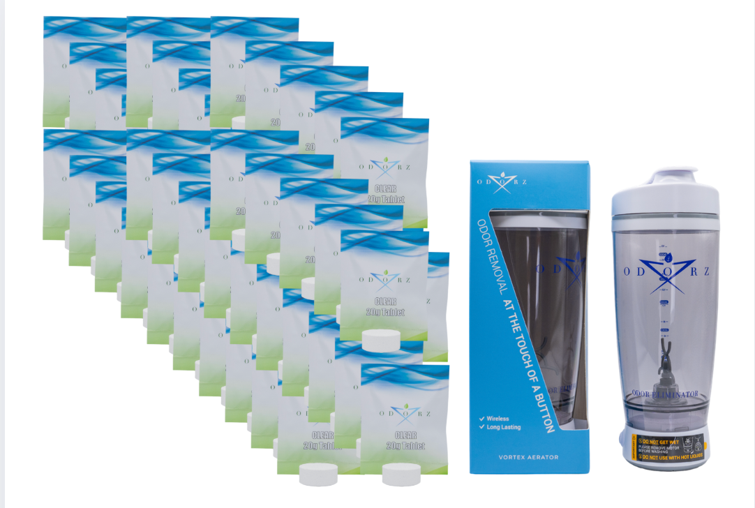Un comprimé de dioxyde de chlore est placé à l’intérieur de notre récipient d’aération avec une quantité mesurée d’eau. Cela démarre la réaction chimique et génère de la vapeur de ClO2.